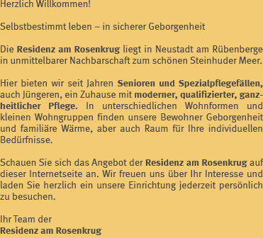 Residenz am Rosenkrug Nienburger Straße 27, 31535 Neustadt am Rübenberge Telefon (0 50 32) 960-0 info@rosenkrug.de